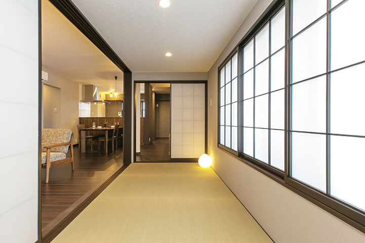 昔ながらの縁側を一部残し現代風にアレンジした縁側スペースを設けました。