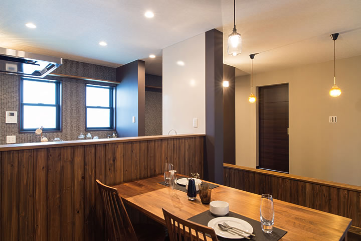 ペンダントライトなど個性的でおしゃれなデザインの照明を採用。レトロモダンな雰囲気を醸し出すくつろぎの空間を演出します。