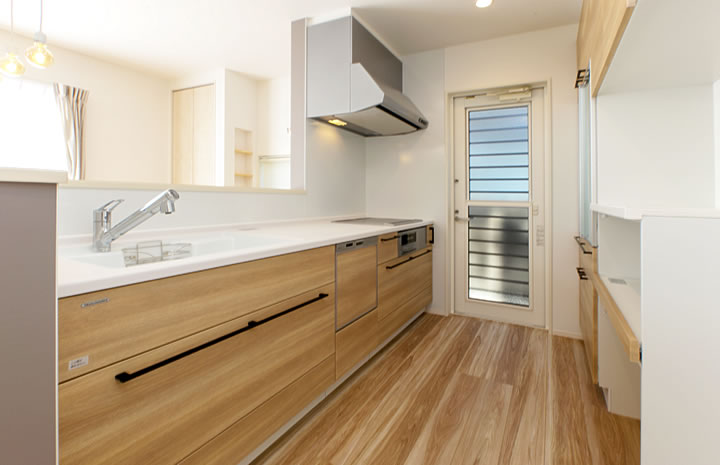 新築でも一番採用率の高い対面キッチン。ご家族の様子を確認しながらお料理が出来ます。