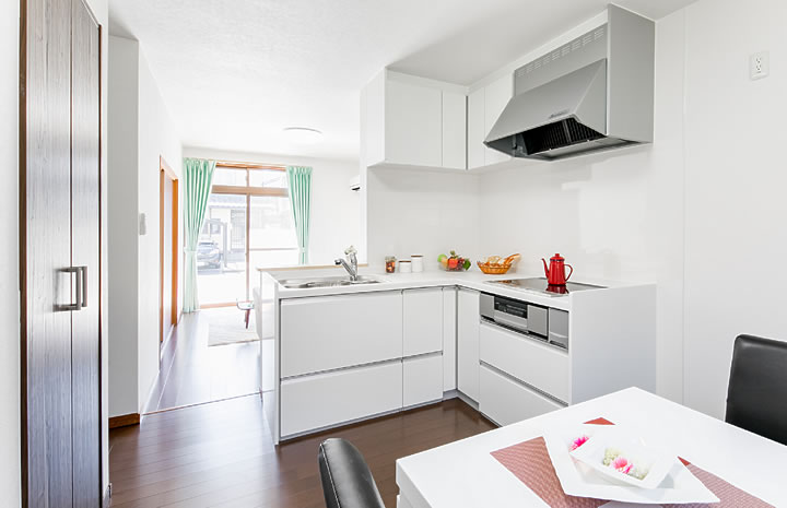 キッチン内のコンパクトな動線を確保でき、収納力も十分に確保できるL字キッチン。