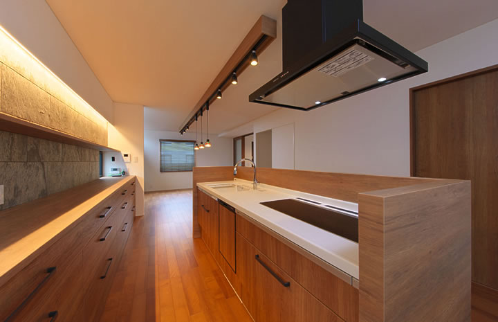 壁に囲まれていない分、開放感のある雰囲気のキッチンになります。