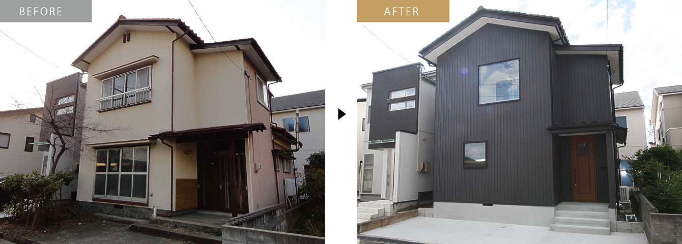 間取り変更/断熱サッシ取替/外壁サイディング/吹付断熱アイシネン/制震金物/屋根葺き替え/外構